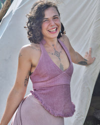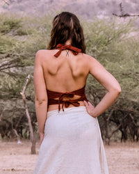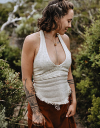 Sensual and fun to wear, this top highlights the natural curves of a feminine body. Raw cotton is durable and textured; a natural fibre that's both soft on the skin and friendly to the environment.
